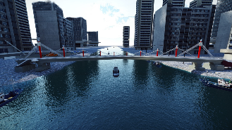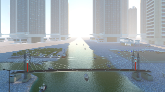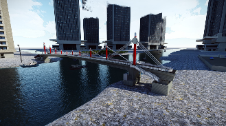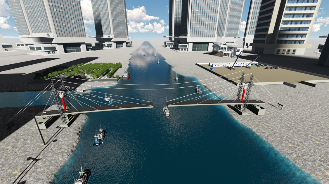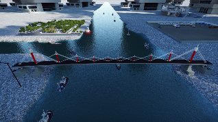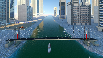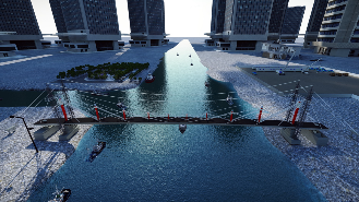 | 1、拆除邊跨滿堂支架; 2、安裝運輸索; 3、兩側同步采用浮吊吊裝鋼箱梁; 4、吊裝后采用臨時拉索錨固。 |